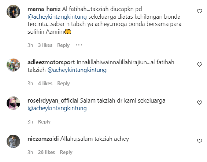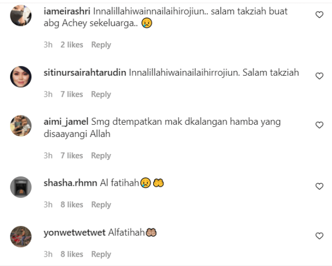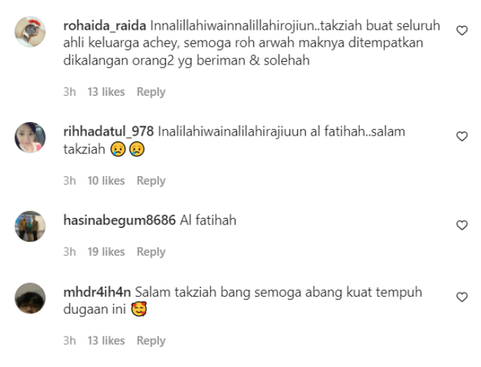 Berita dvka tersebut diterima Achey ketika sedang dalam perjalanan pulang selepas tamat bekerja di sebuah acara.