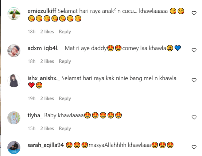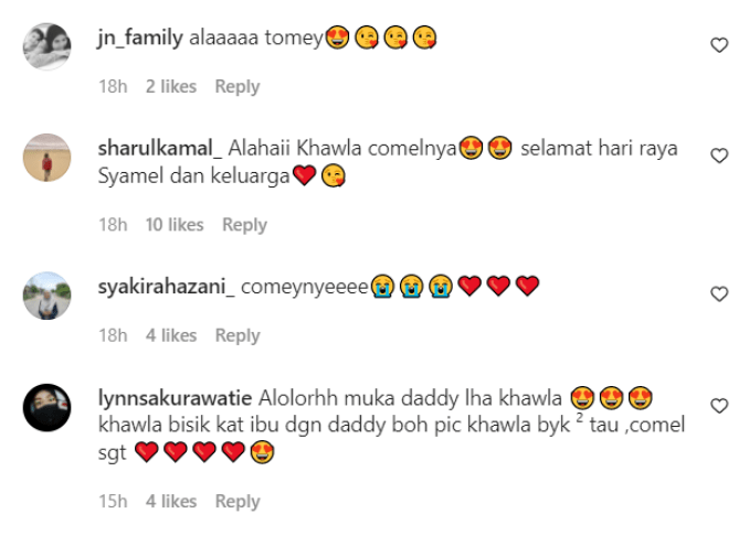Meninjau ke ruangan komen, para peminat dan selebriti memuji kecomelan Nur Khawla.