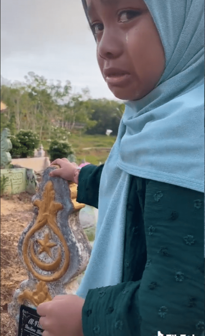 Menerusi video yang dimuat bapanya di media sosial, ramai turut seb4k melihat keadaan Sumayyah men4ngis teresak-esak di kvbur ibunya.