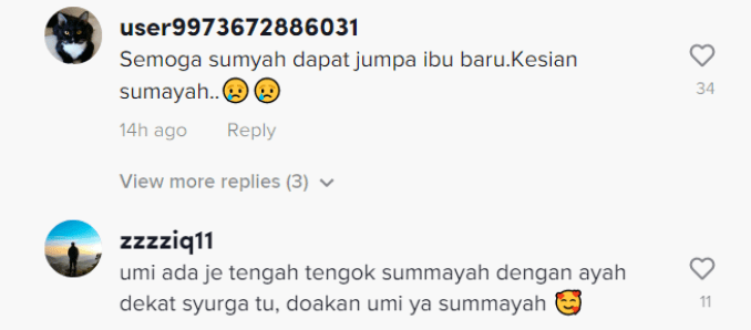 Menjengah ke ruangan komen, rata-rata orang ramai menitipkan doa buat kanak-kanak tersebut agar terus kuat dalam menjalani kehidupannya dan membesar menjadi anak yang solehah.