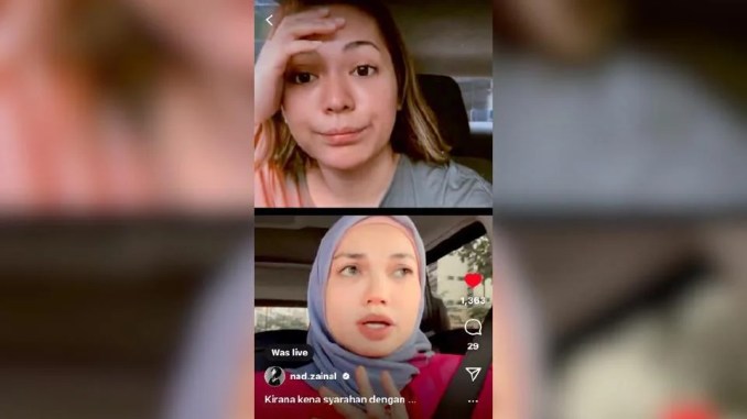 Puteri Sarah dan Nad Zainal membincangkan topik orang ketiga dalam rumah tangga menerusi sesi IG Live, beberapa jam lalu. – Foto IG Nad Zainal